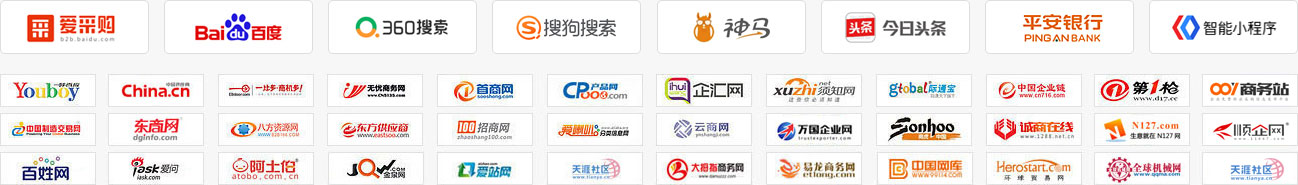 一比多 八方資源網(wǎng) K2商務網(wǎng) 首商網(wǎng) 無憂商務網(wǎng) 金屬期貨 蜘蛛客 第一槍 淘金地 萬國企業(yè)網(wǎng) 誠商在線 搜好貨網(wǎng) 供求信息網(wǎng) 如意寶建站 如意問答 最新商機 中國供應商 卓采匯 搜貨寶 100推 企業(yè)聯(lián)合網(wǎng) 領商網(wǎng)